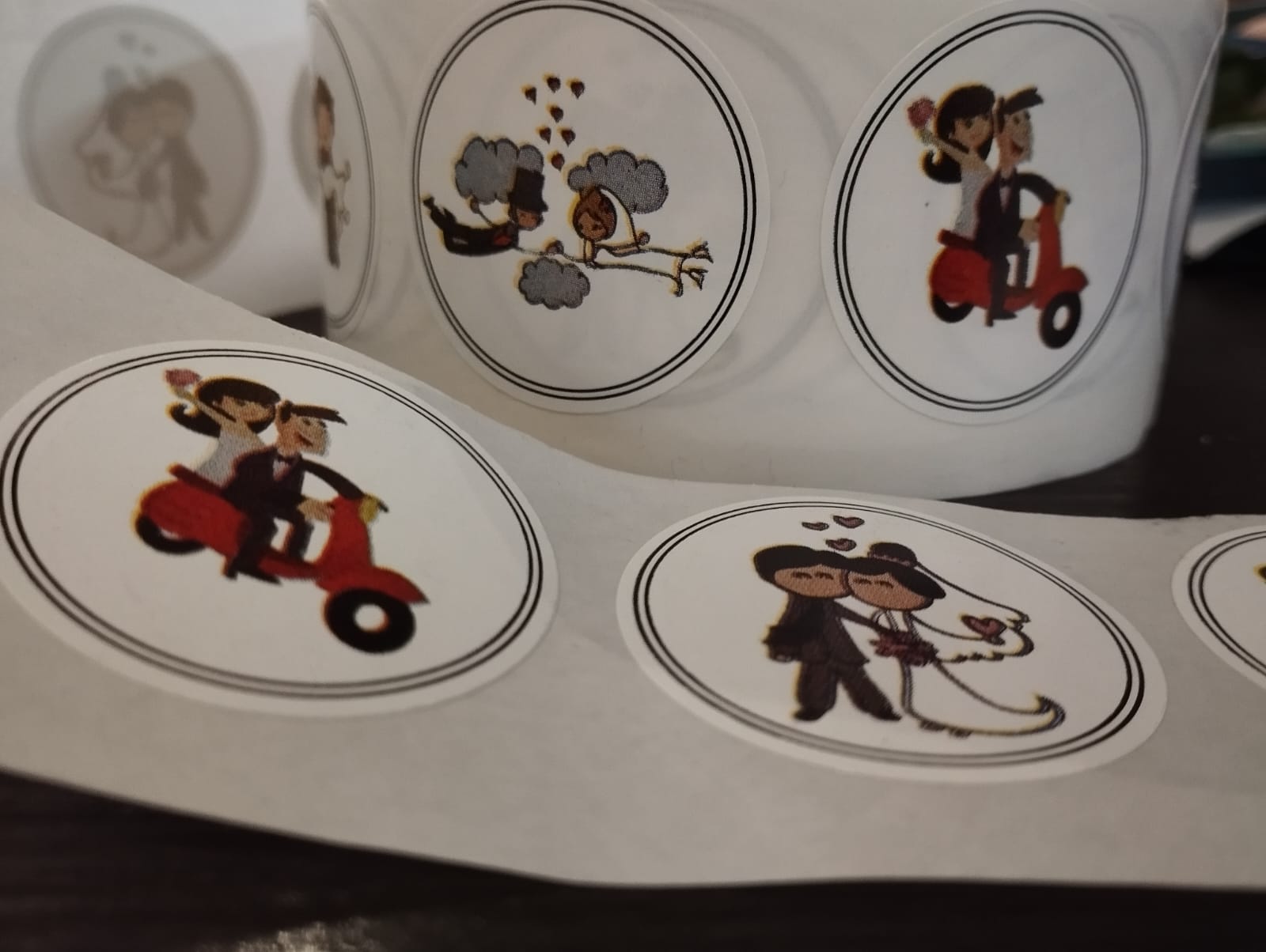 Stickers o adhesivos con motivos de matrimonio el complemento ideal para regalos, presentes, ramos y arreglos florales. Detalles para ese día tan especial. 100 unidades.