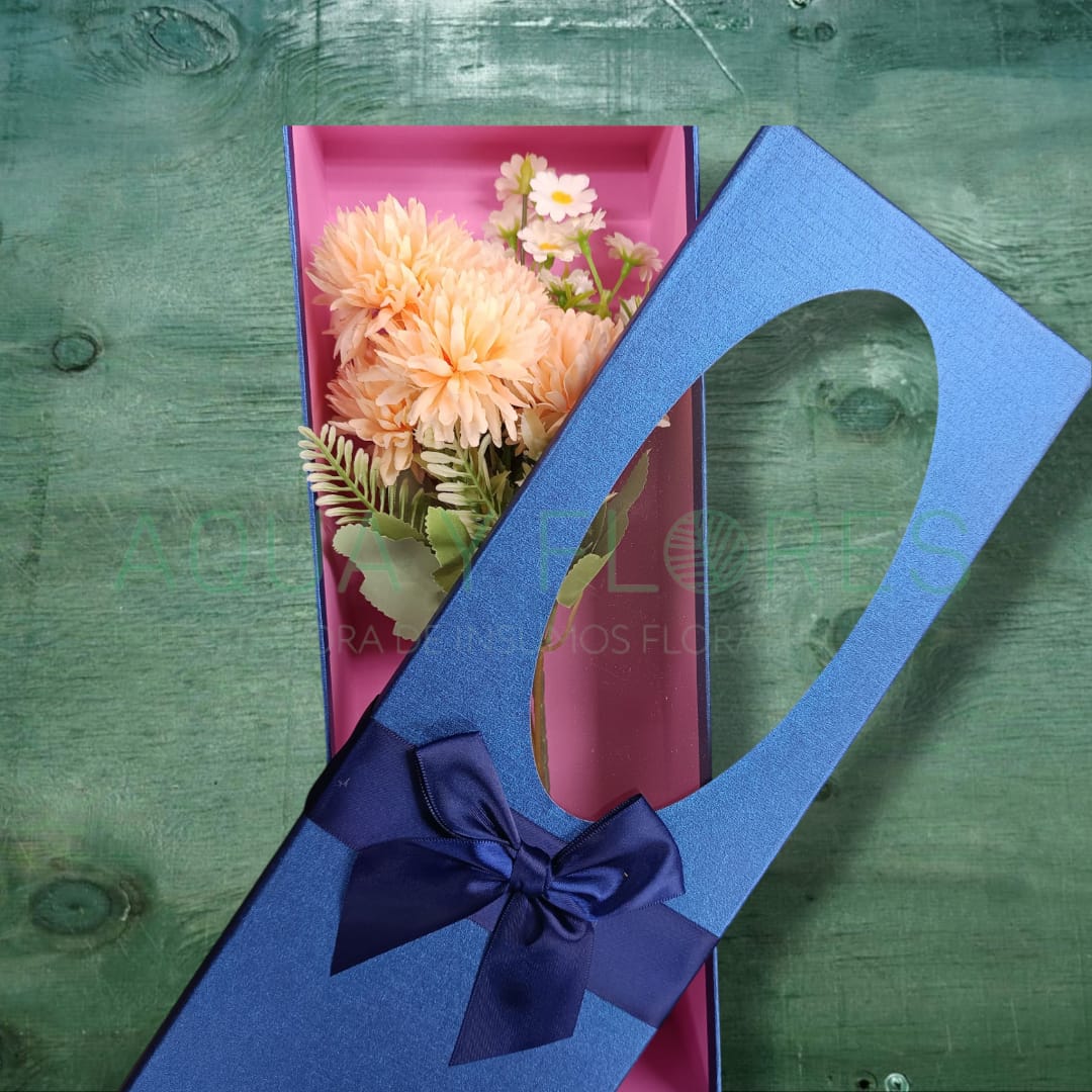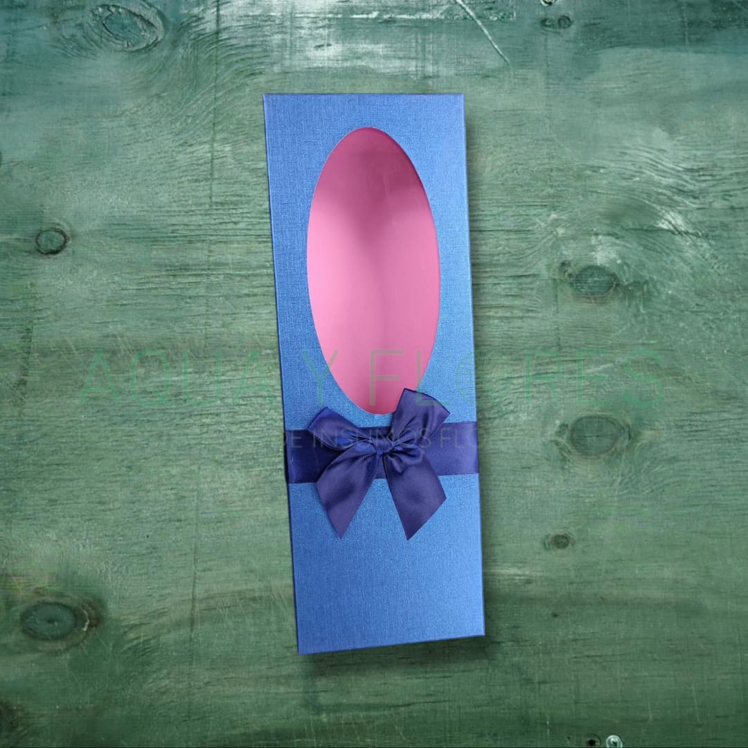 Elegante y práctica, esta caja de cartón grueso en formato rectangular es ideal para presentar arreglos florales, chocolates o regalos especiales. Su tapa cuenta con una ventana ovalada transparente que permite apreciar el interior, y está decorada con un lazo de satín del mismo tono, aportando un acabado delicado y sofisticado.