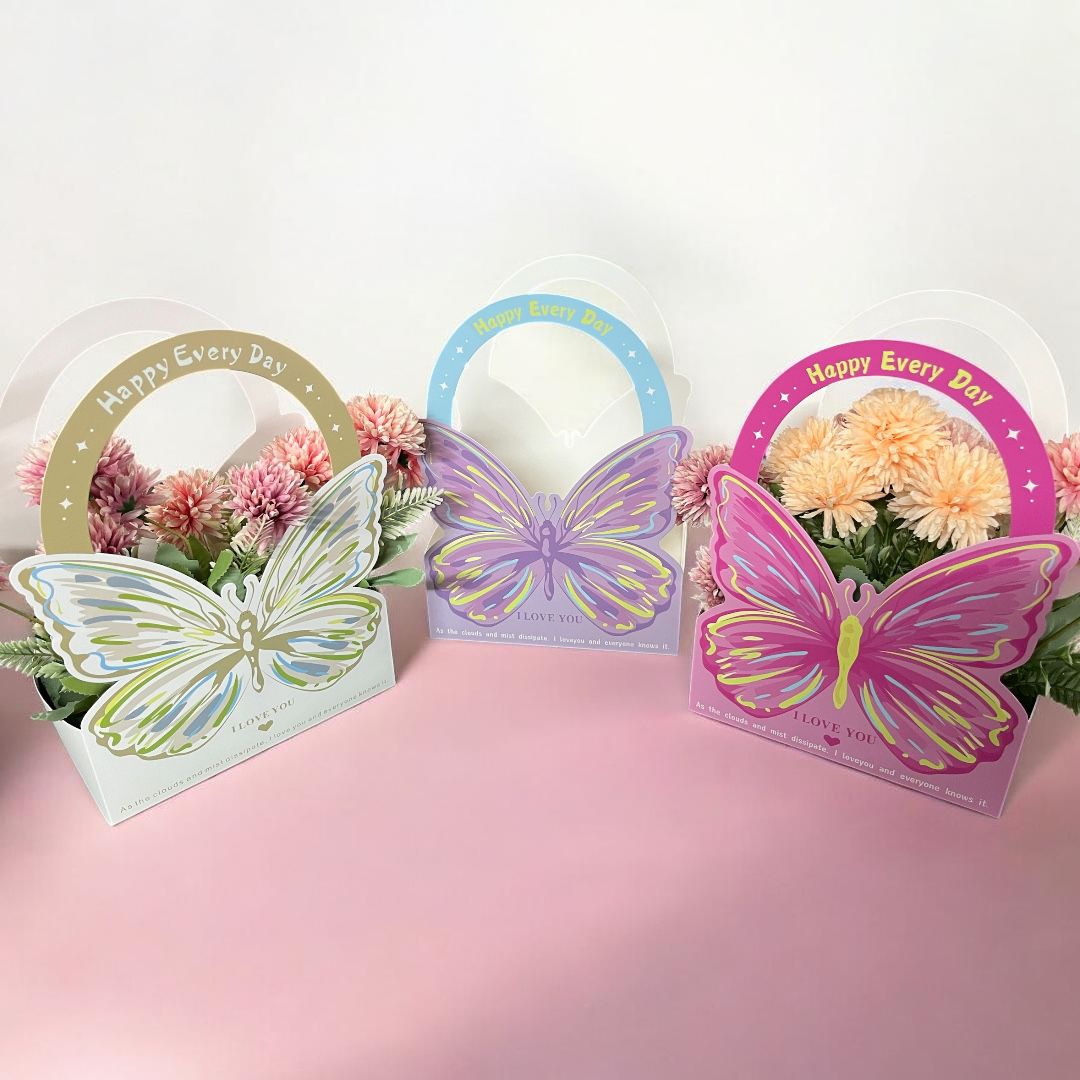 Dale un toque delicado, moderno y encantador a tus arreglos con esta cartera mariposa con asa, ideal para presentar flores de forma original y elegante 💐🦋