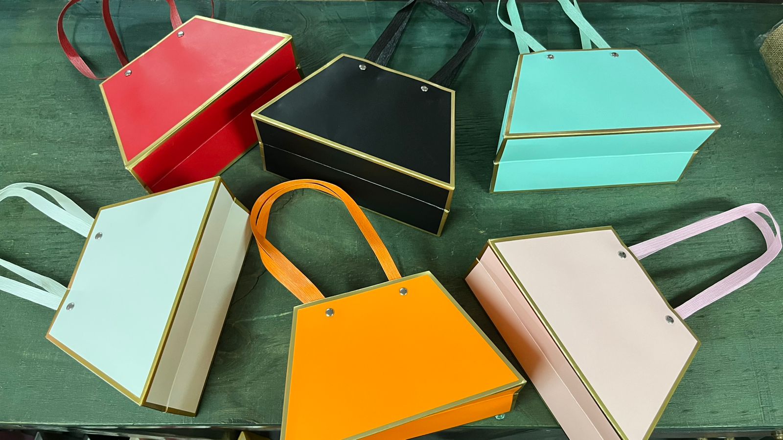 Elegante y moderna, esta cartera rígida con marco dorado es perfecta para presentar flores, regalos y detalles premium 🎁✨. Su diseño geométrico la hace destacar en cualquier vitrina o arreglo.