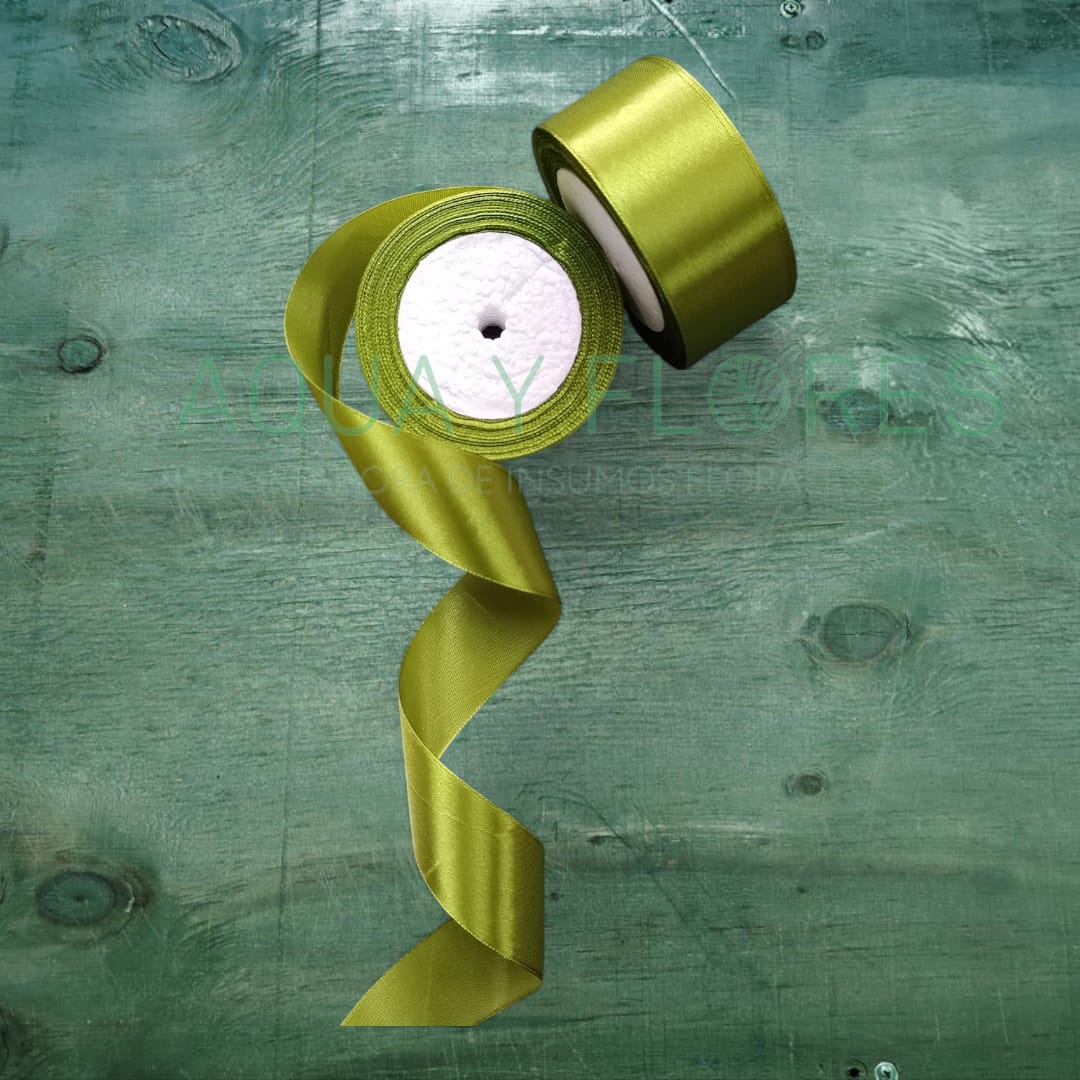Cinta de satín color Verde Musgo, resistente, suave y sedosa. Ideal para decoración de eventos, rosas eternas, lazos, manualidades y regalos.