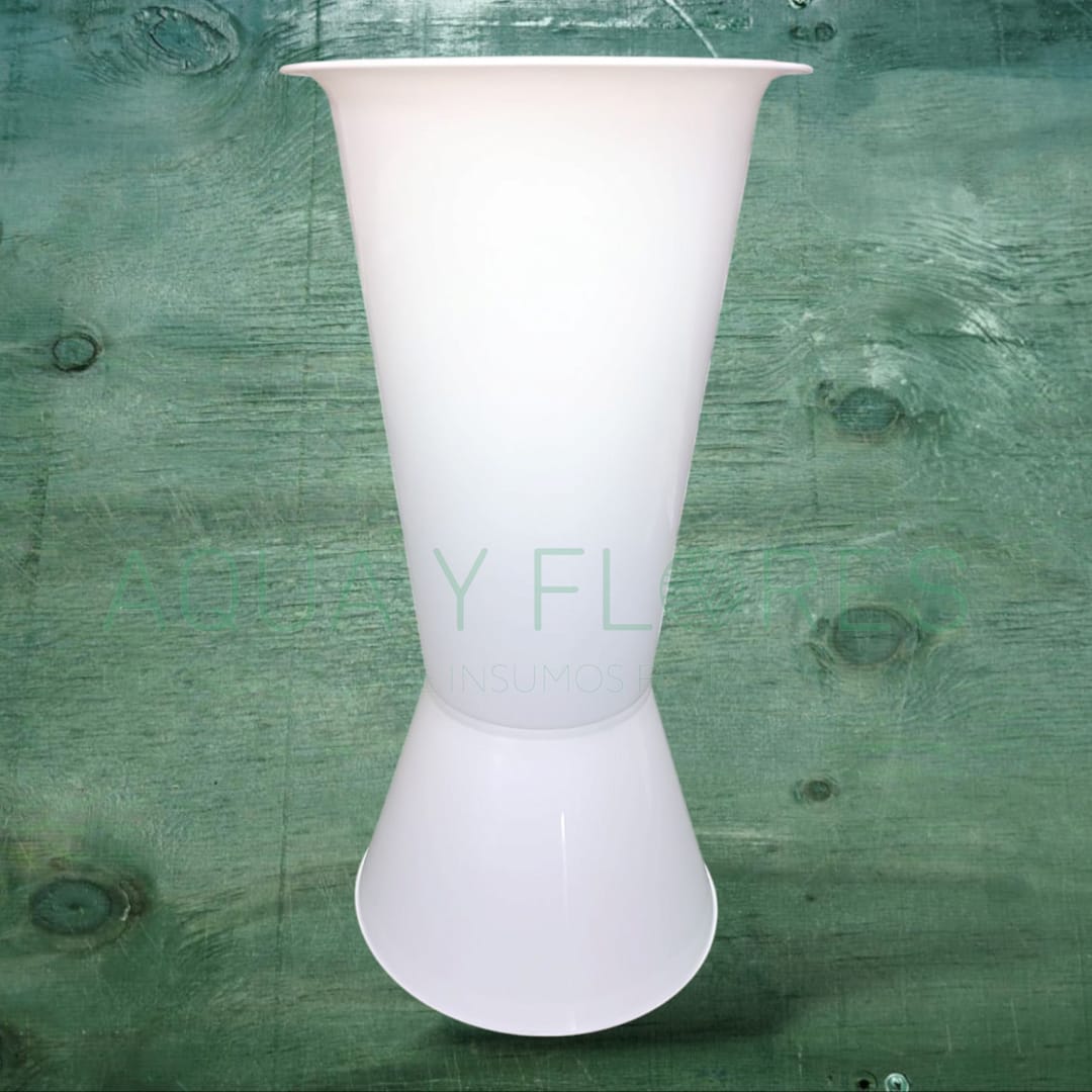 Ideal para exhibiciones elegantes y arreglos florales de gran tamaño. Fabricado en plástico resistente, este florero combina practicidad y estética, perfecto para eventos, florerías o decoración de espacios.