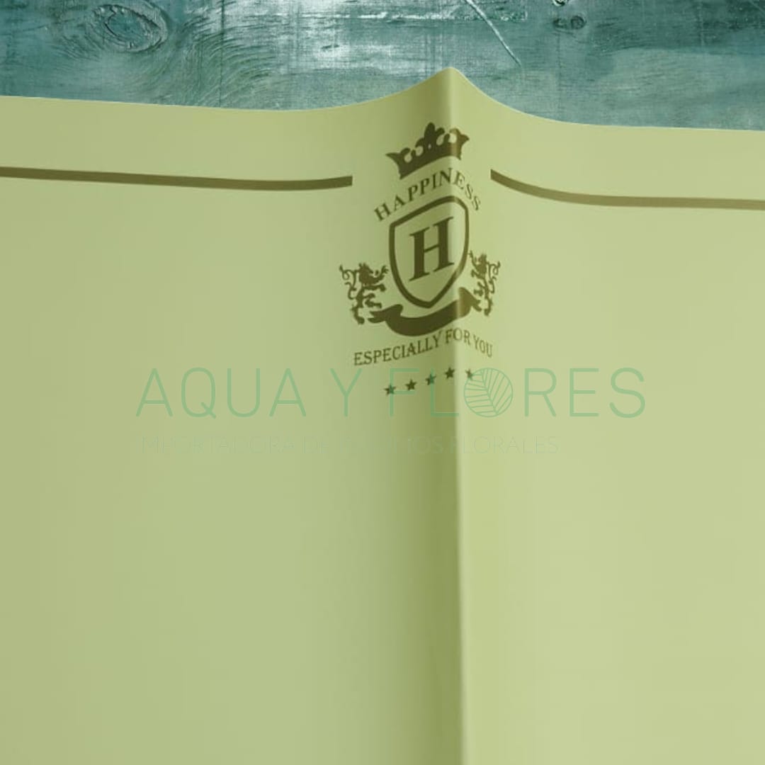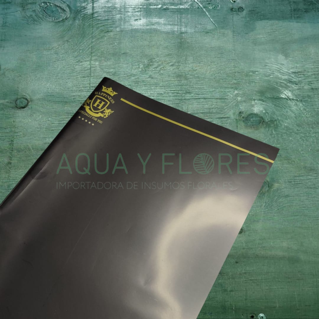 Cada pliego cuenta con un diseño sólido , decorado con un escudo dorado y la frase “HAPPINESS – ESPECIALLY FOR YOU”, además de una línea dorada en el borde superior e inferior, aportando un aire de distinción ideal para arreglos florales, regalos de lujo y proyectos creativos con estilo propio 🎁🌸.