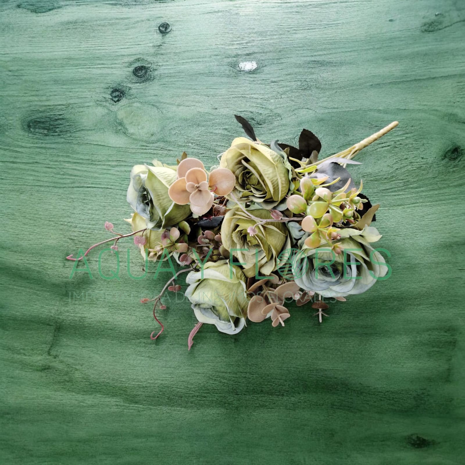 Ramo Rosas Envejecidas Verde Musgo 1 Vara 9 Flores
