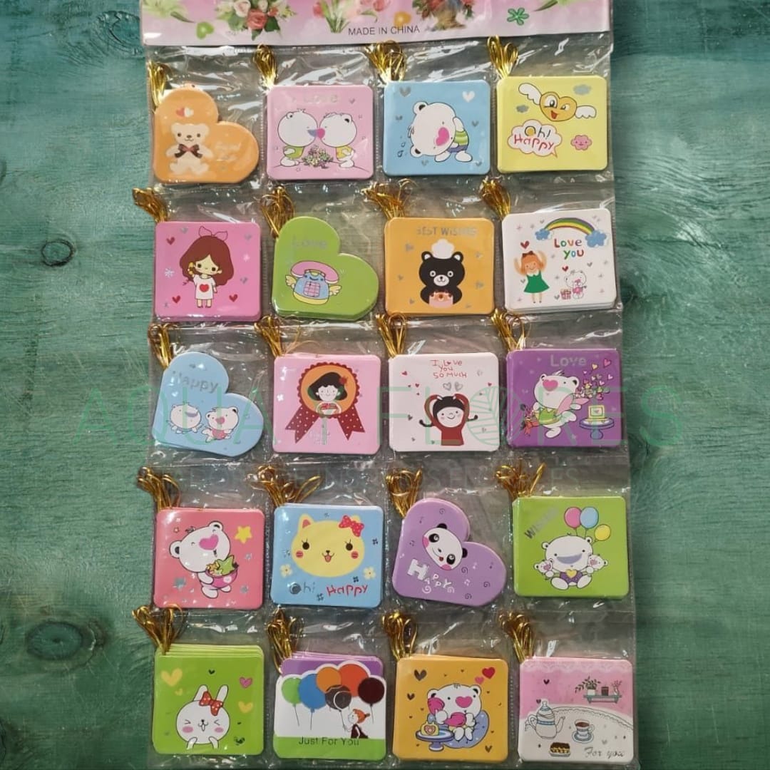 Agrega un toque adorable a tus productos con este display de tarjetas mini con diseños tiernos. Cada set incluye 160 tarjetas ilustradas distribuidas en 20 modelos distintos (8 unidades por diseño), con simpáticos personajes y colores llamativos que encantan a grandes y chicos.